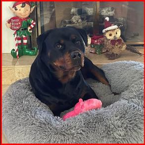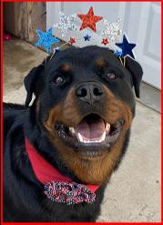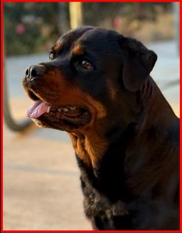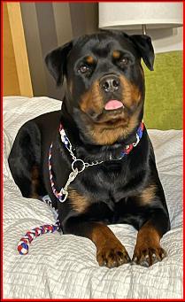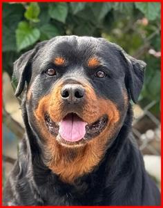 Liberty is the kind of Rottweiler who wins hearts without even trying, she is sweet-tempered, loyal, and completely tuned in. She carries herself with that classic Rottweiler confidence, but the moment you ask her for anything, she responds with eagerness and devotion, as if helping you is her favorite job in the world. Whether she's calmly resting at your side or happily trotting along on a new adventure, Liberty radiates warmth and trust. Her gentle nature, paired with her willingness to do whatever you ask, makes her not just a wonderful companion, but a truly exceptional dog. Liberty is the dam to our America who was a singleton.